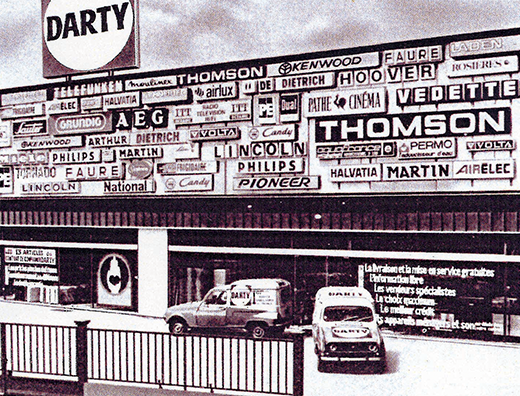 Les frères Darty lancent l’enseigne du même nom. Le Contrat de Confiance qui nous est si familier est bien présent : « Un client n’est satisfait que si le produit qu’il achète fonctionne et rend les services que l’on attend de lui ». Prix bas, livraison et dépannage rapide sont les maîtres mots du magasin. Et ça n’a pas changé depuis.